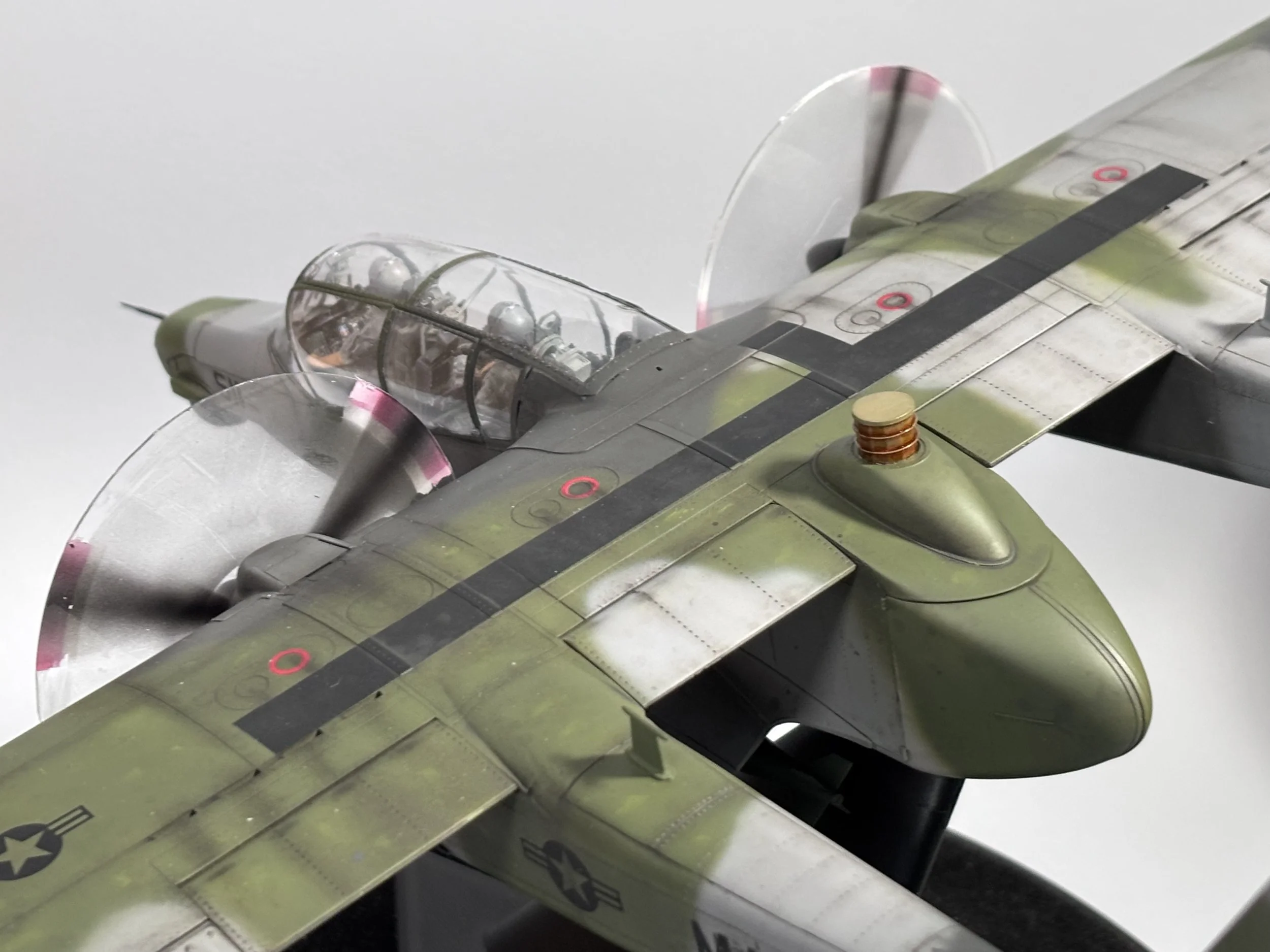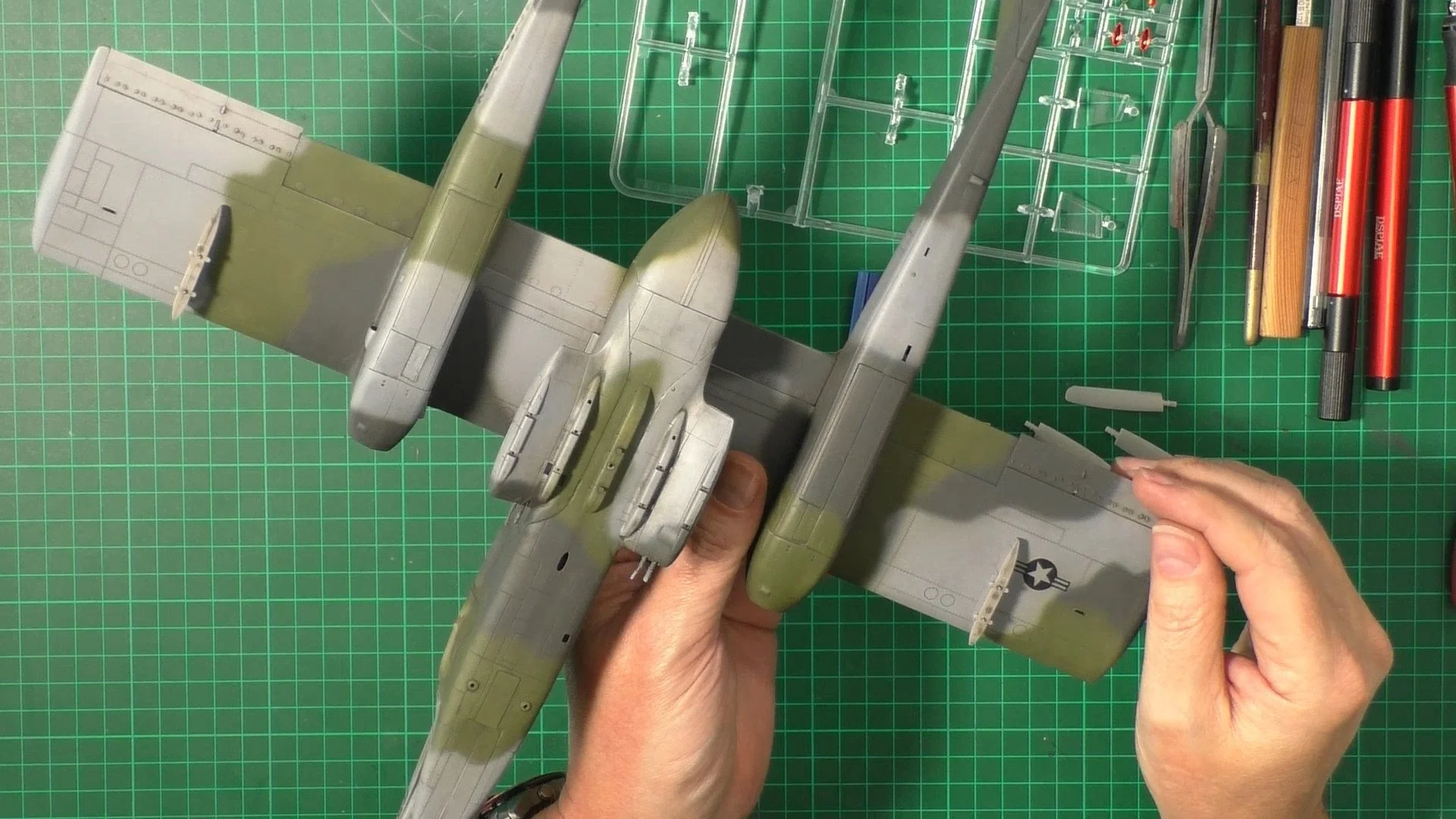 0:00 First, we build up the tail booms and install the gear doors. And the sand in the filler used around the engine covers. 13:16 Next, it's time to fit the booms to the wings, and this isn't a great fit, so with some sanding and cutting, we get them to fit. 24:55 Last up, we test fit it all together and then add the nose and the gun pods to the main fuselage.
