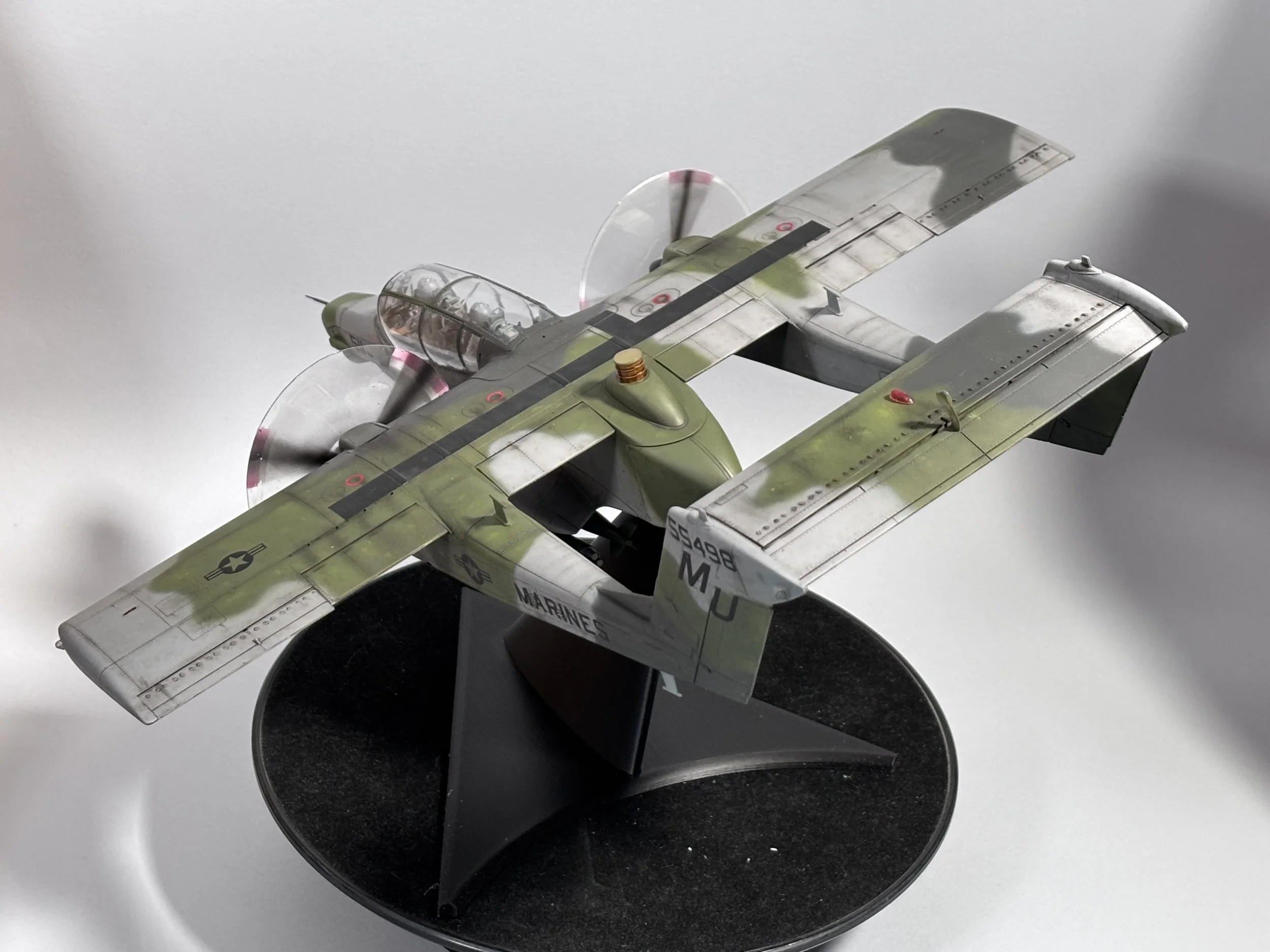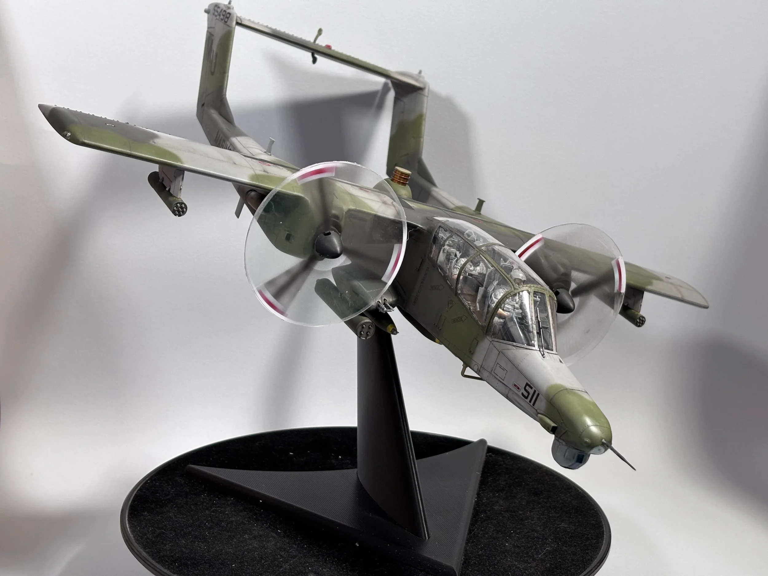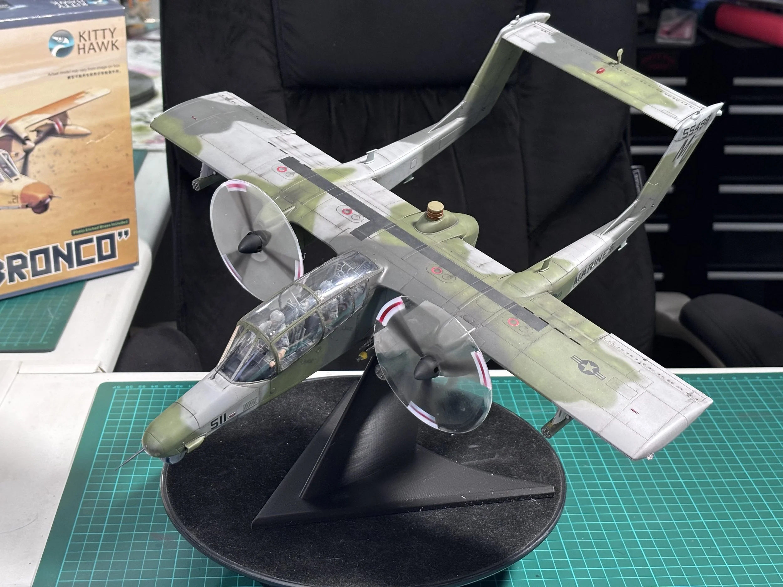 0:00 First up, we start with an oil wash to create a weathered paintwork effect and age the paintwork. 6:43 Here, it's the moment of truth, and we unmask the canopy. 15:47 Now it's time to make the blurred props. We use 0.5mm clear acrylic sheet and an airbrush for the effect. 41:49 with the props on, it's time to put the model in-flight with a Flory models IFS001 Large in filght stand using the 15o port angle. 51:04 With the Bronco mounted, it's ready for the final reveal