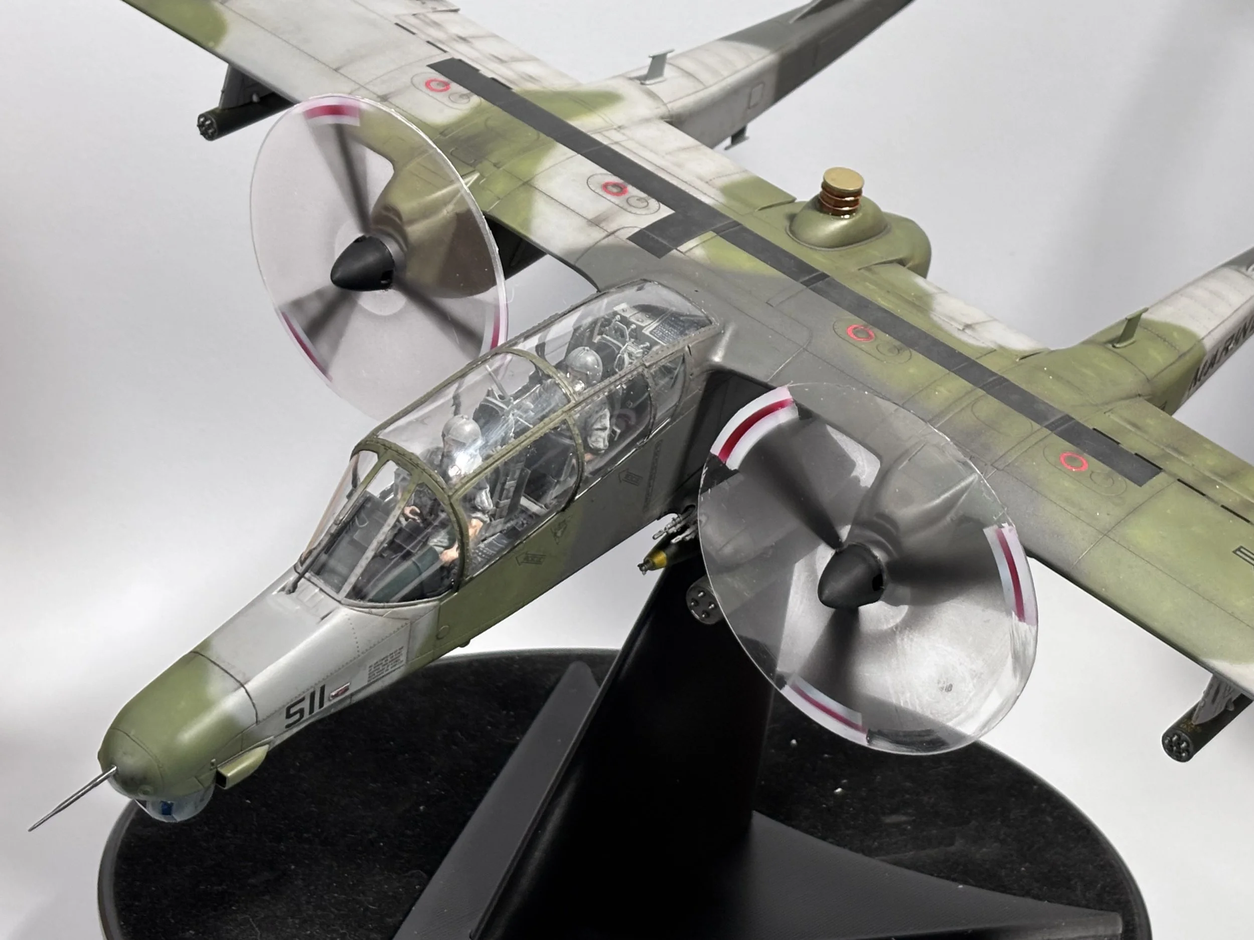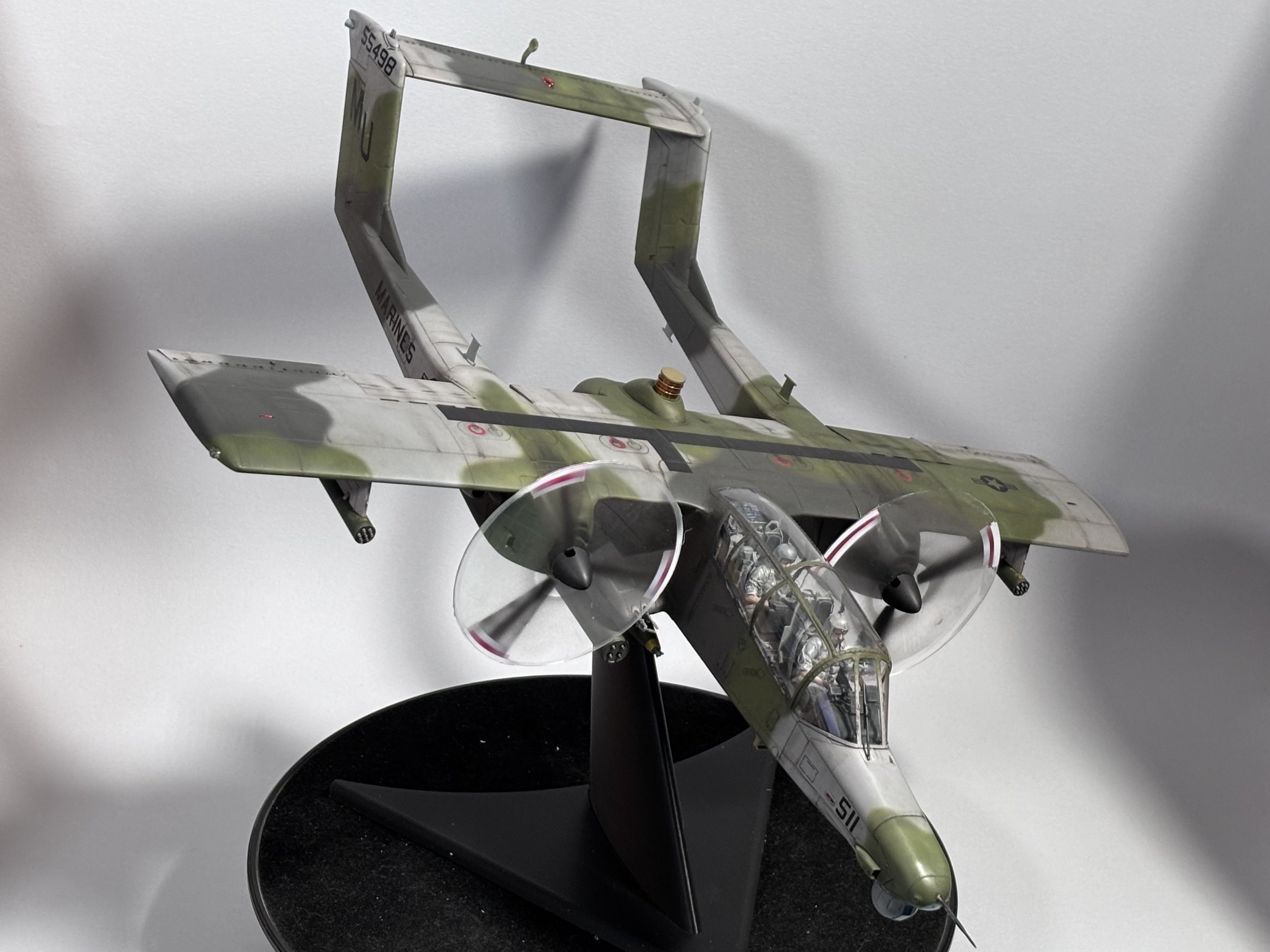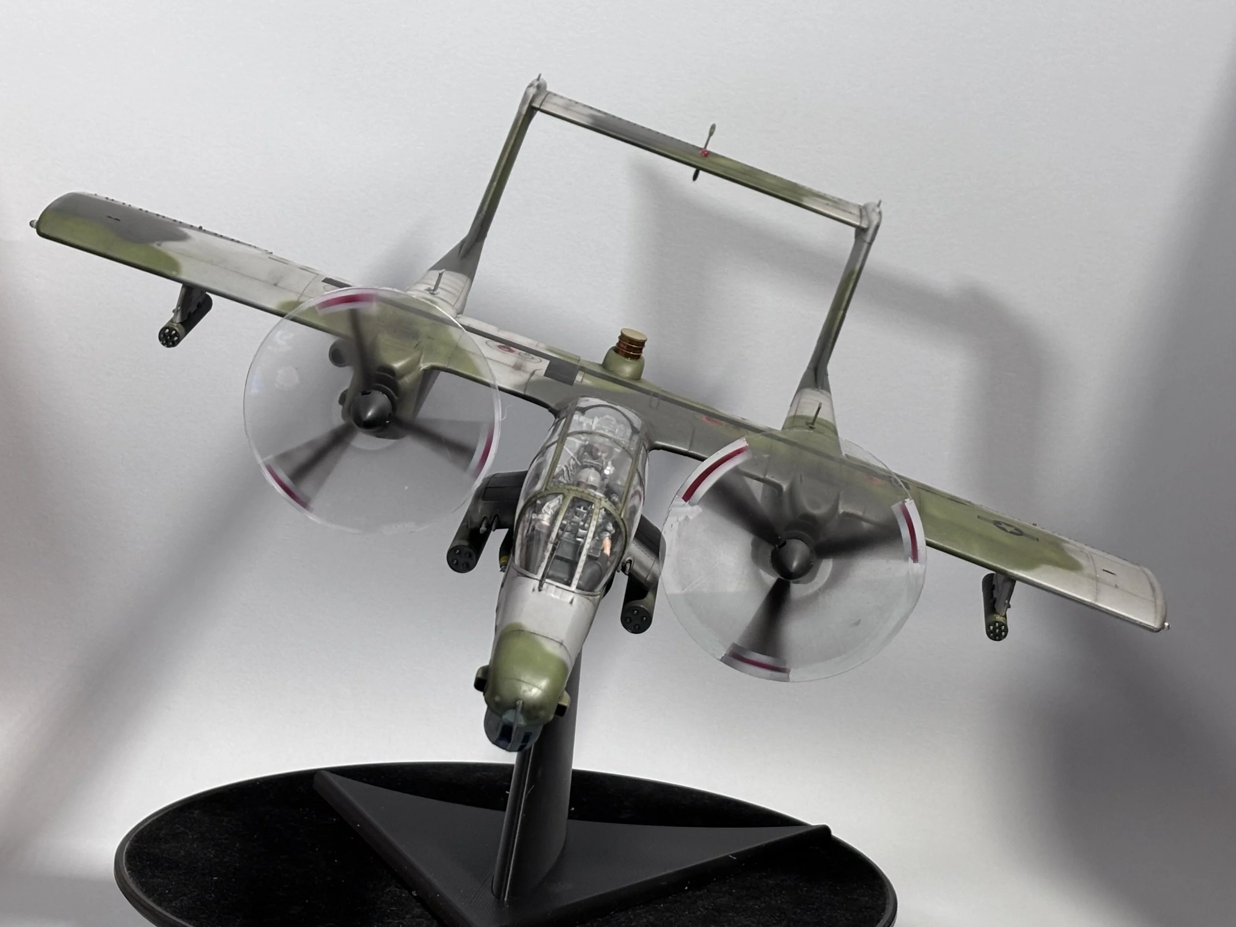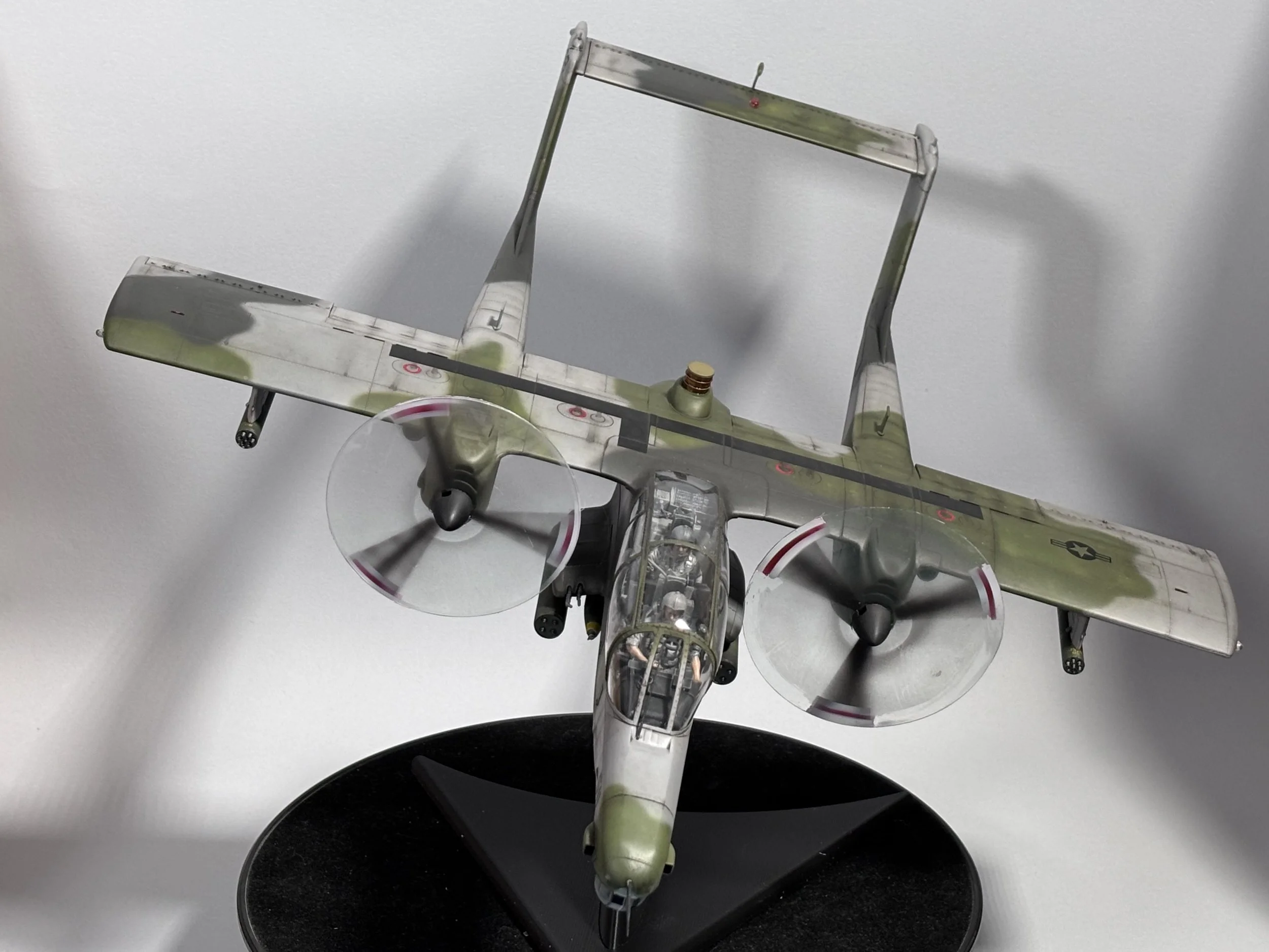 0:00 First up, we start with an oil wash to create a weathered paintwork effect and age the paintwork. 6:43 Here, it's the moment of truth, and we unmask the canopy. 15:47 Now it's time to make the blurred props. We use 0.5mm clear acrylic sheet and an airbrush for the effect. 41:49 with the props on, it's time to put the model in-flight with a Flory models IFS001 Large in filght stand using the 15o port angle. 51:04 With the Bronco mounted, it's ready for the final reveal
