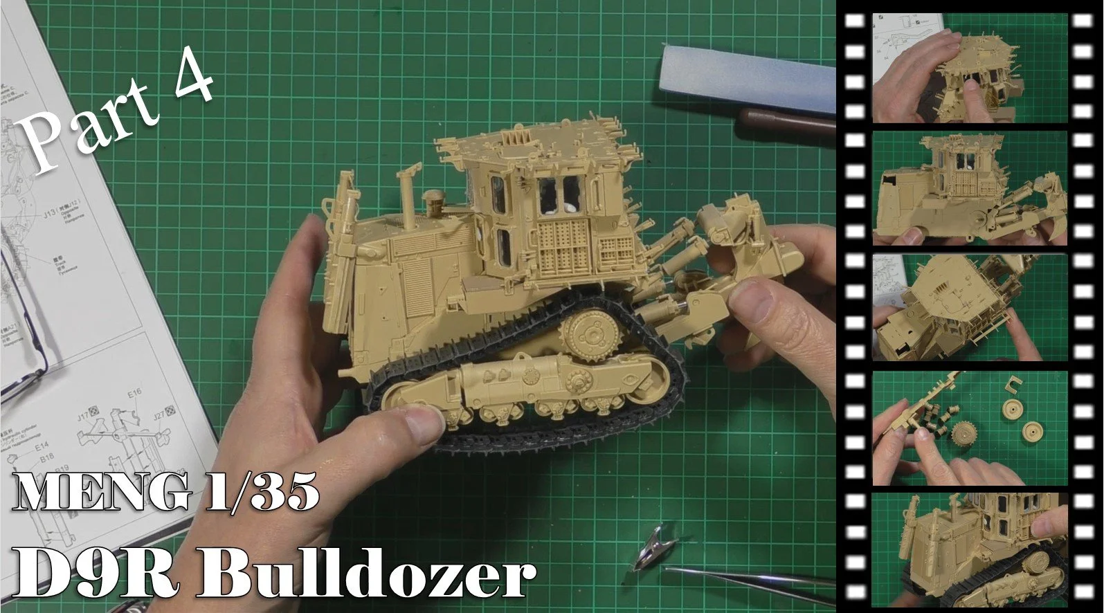 In Part Four, we add all the Bar amour hangers to the dozer. Next we put together the drive sprocket and wheels for the tracks and then test fit.