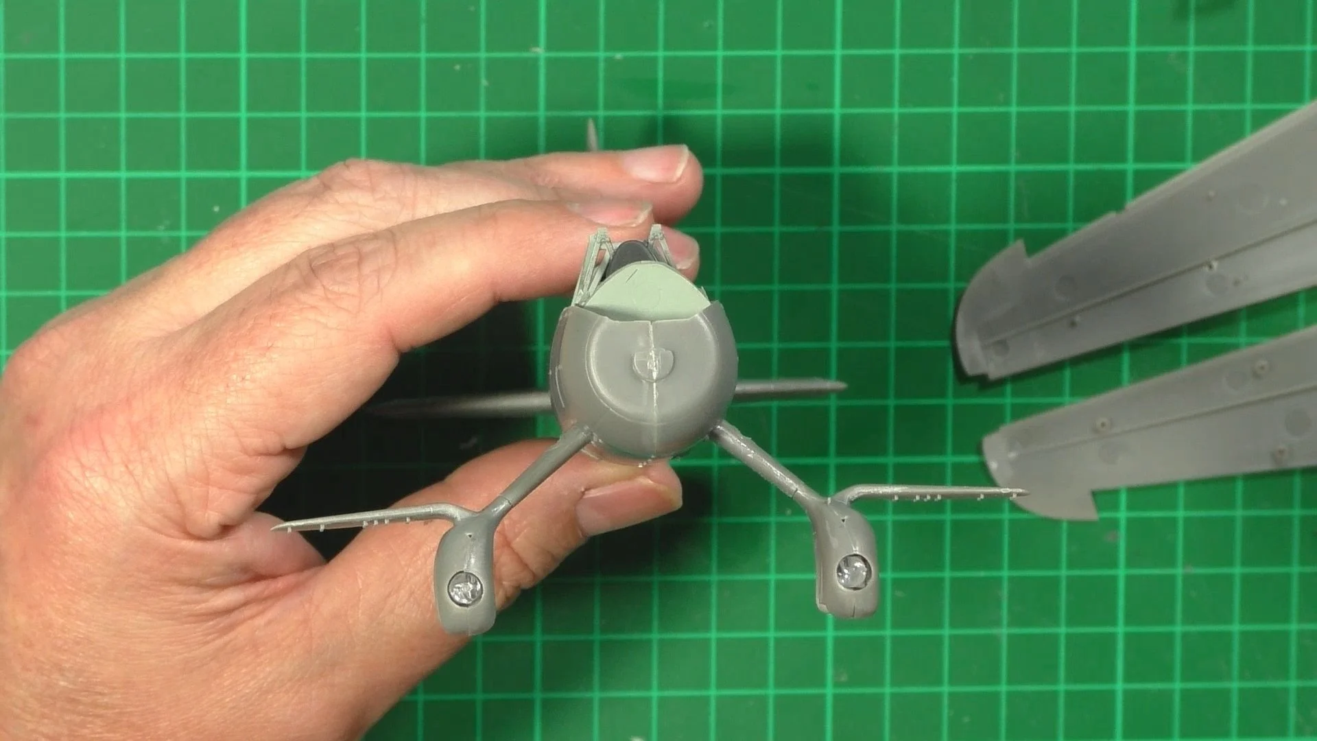 0:00 First up, we use the kit's decal instrument panel and use a lot of settle agents to get them to conform and settle down nicely. 6:14 Next up, it's time to install the cockpit and framework to the fuselage halves together. 10:25 Here we put the tail planes together and then the landing gear. 18:24 With the fuselage drying, we build the wings. 27:01 Next, we put the engine together.