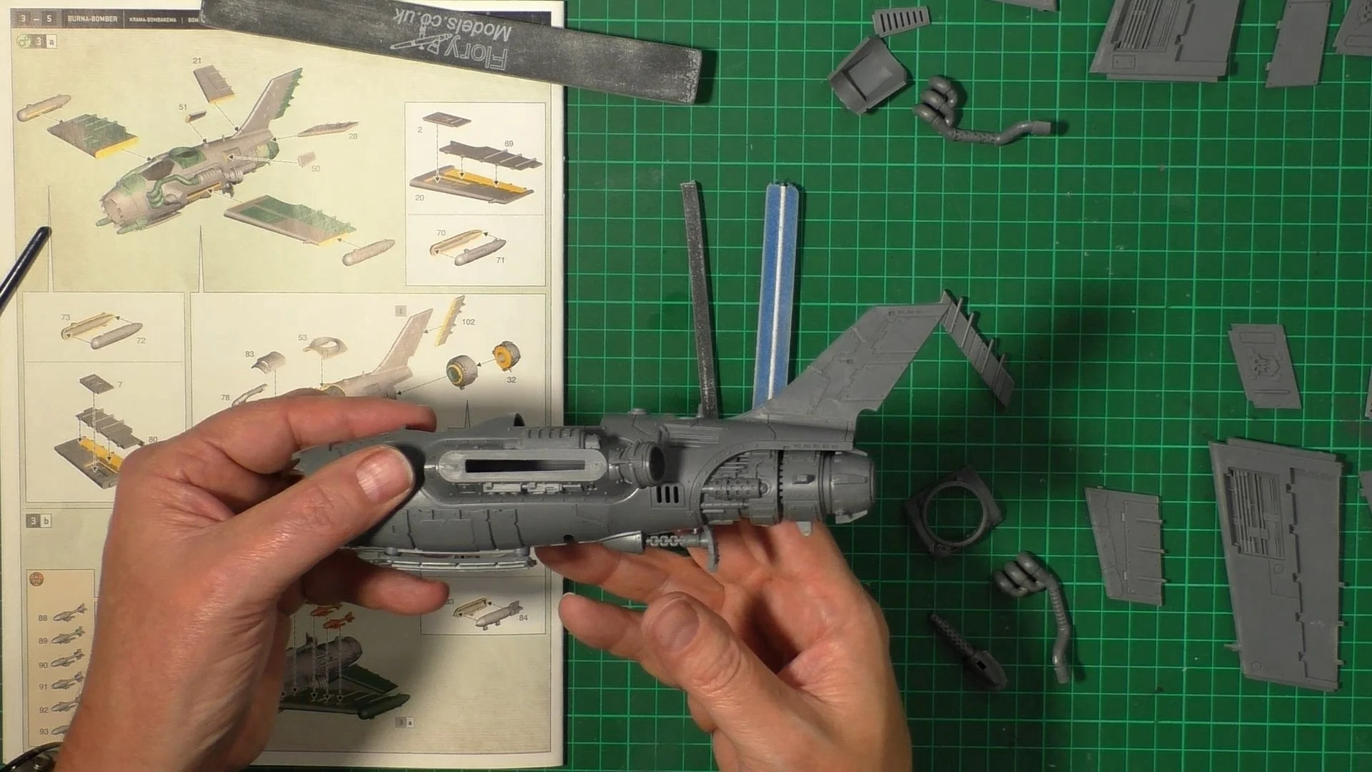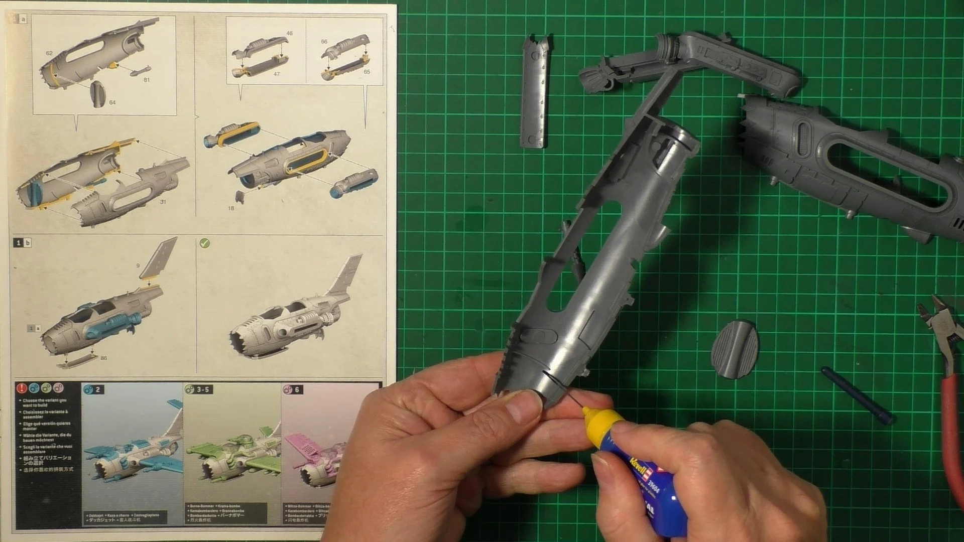 0:00 We look at the build and decide on the type we will do. 1:57 Next, we start work on the main fuselage and join the two halves. 13:03 Here we install all the engines, wings, guns etc. 24:35 Last, we look at the cockpit and the clear parts.