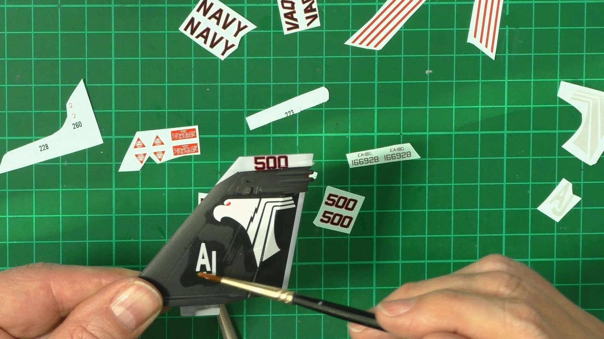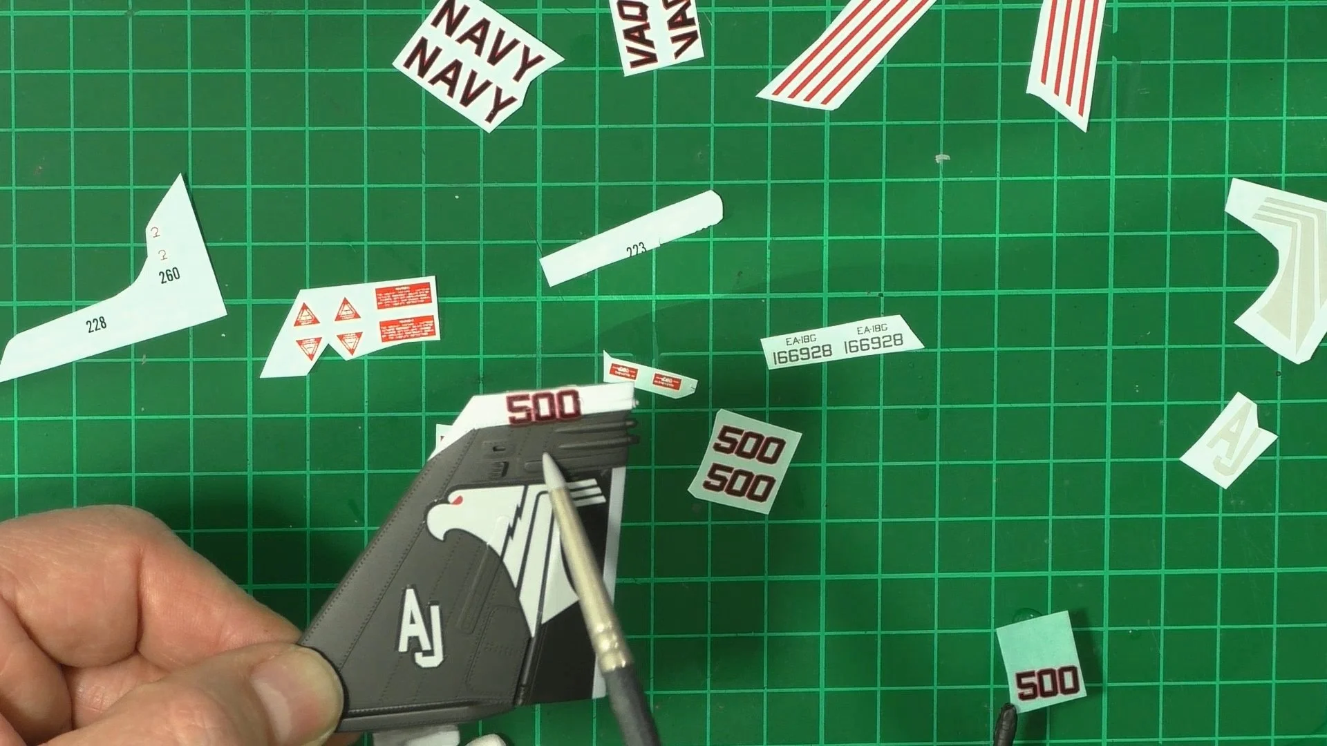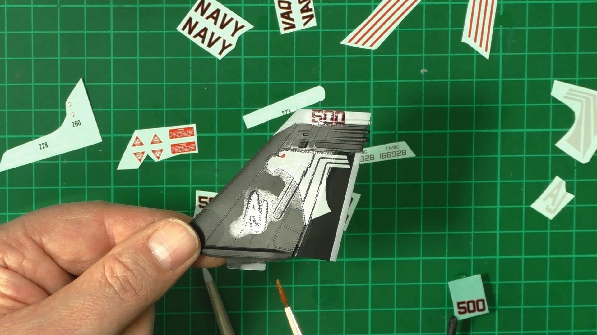 0:00 To start off, we start the long process of decaling. WE start with the Large culorful CAG markings and then follow up with the small stencil data markings. 15:55 With the decaling complete and settled down nicely, we move into the spray booth to seal them in with a coat of VMS XXL satin varnish.