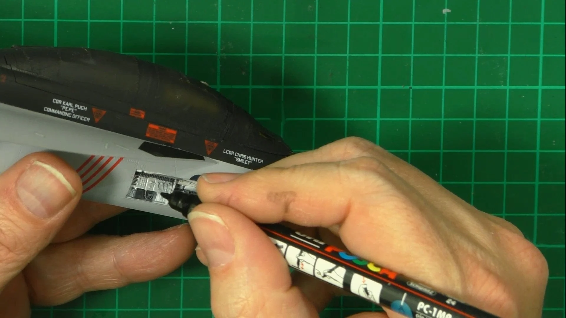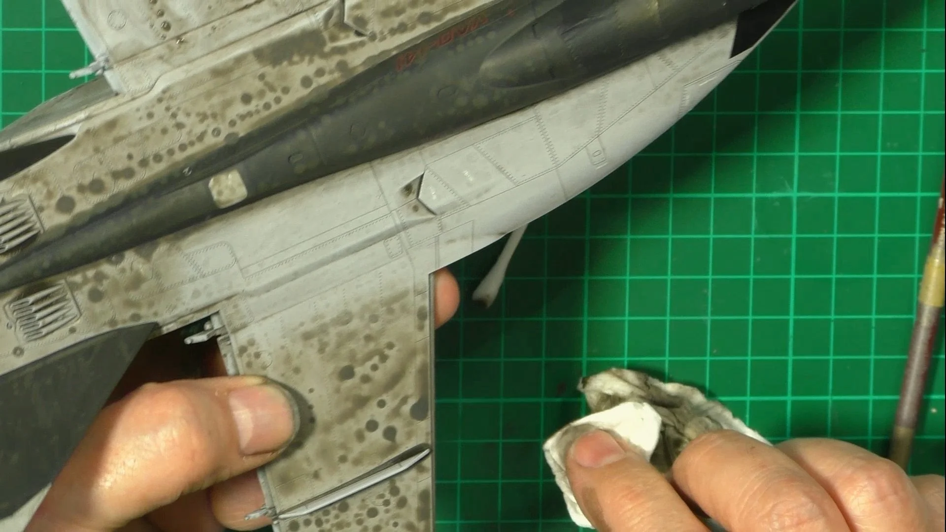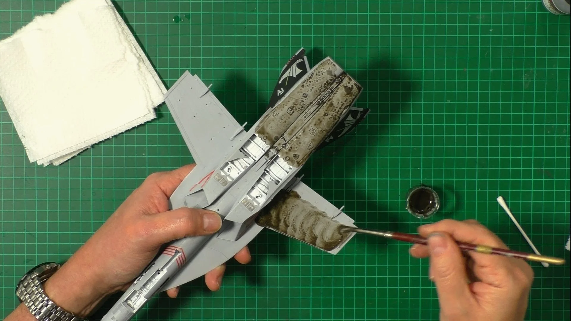 0:00 First up, we detail and paint the electronics bays with pens and fine brushes. 7:30 Here, we add the red edging to the gear doors with a red Sharpie pen. 11:34 Next, it's time to start the weathering. First up, we brush on a coat of Flory Models Dark dirt weathering wash over the whole model, and allow it to dry completely. 14:54 While it's drying, we make a diluted wash mix 50/%0 with tap water to thin the wash and brush on the gear and wheel wells. 19:34 With the wash completely dry, we wipe it down with a damp cloth and examine the results.