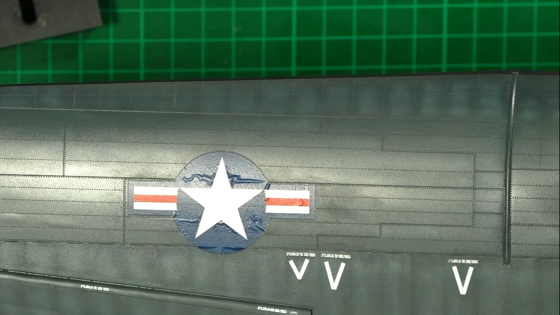 0:00 with the top side all masked, we put down a coat of the Hataka CC001 Dark Sea Blue. 7:43 Next, we add a few drops of the Intermediate Blue C027 we used before to lighten the dark blue, then thin it more to do more post-shading of the dark blue. 12:23 Now it's time to mask up the De-icing boots on the leading edge of the wing and paint rubber black with Tamiya XF-85. 16:44 Finally, it's time to bring the model to life with decalling.