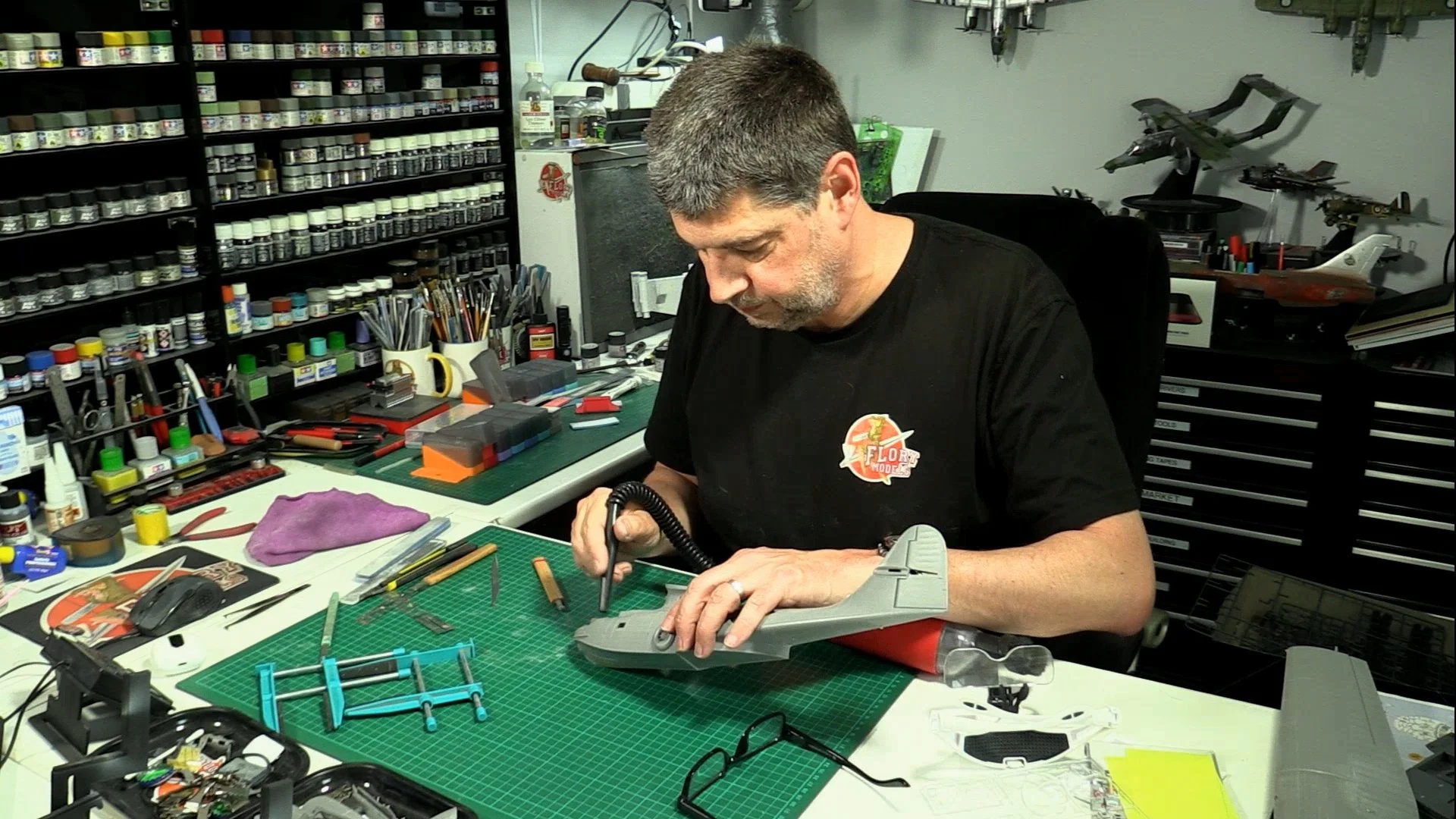 0:00 First up, we fix a small problem. We have glued the tail wrong and need to open the seam and then reset it in the correct place. 14:17 Next, we fill and sand all the seams. 19:15 Here, we fix the hull, it has a gash in the plastic caused by the sprue tab tearing the plastic from the part. 22:25 Last up, we re-scribe and re-rivet the whole model as the original is very faint and won't show up well after priming and painting.