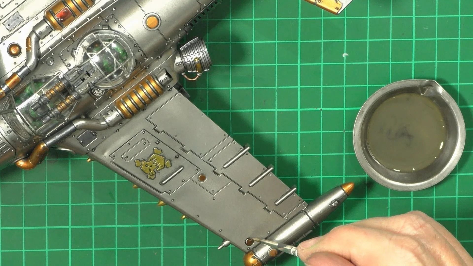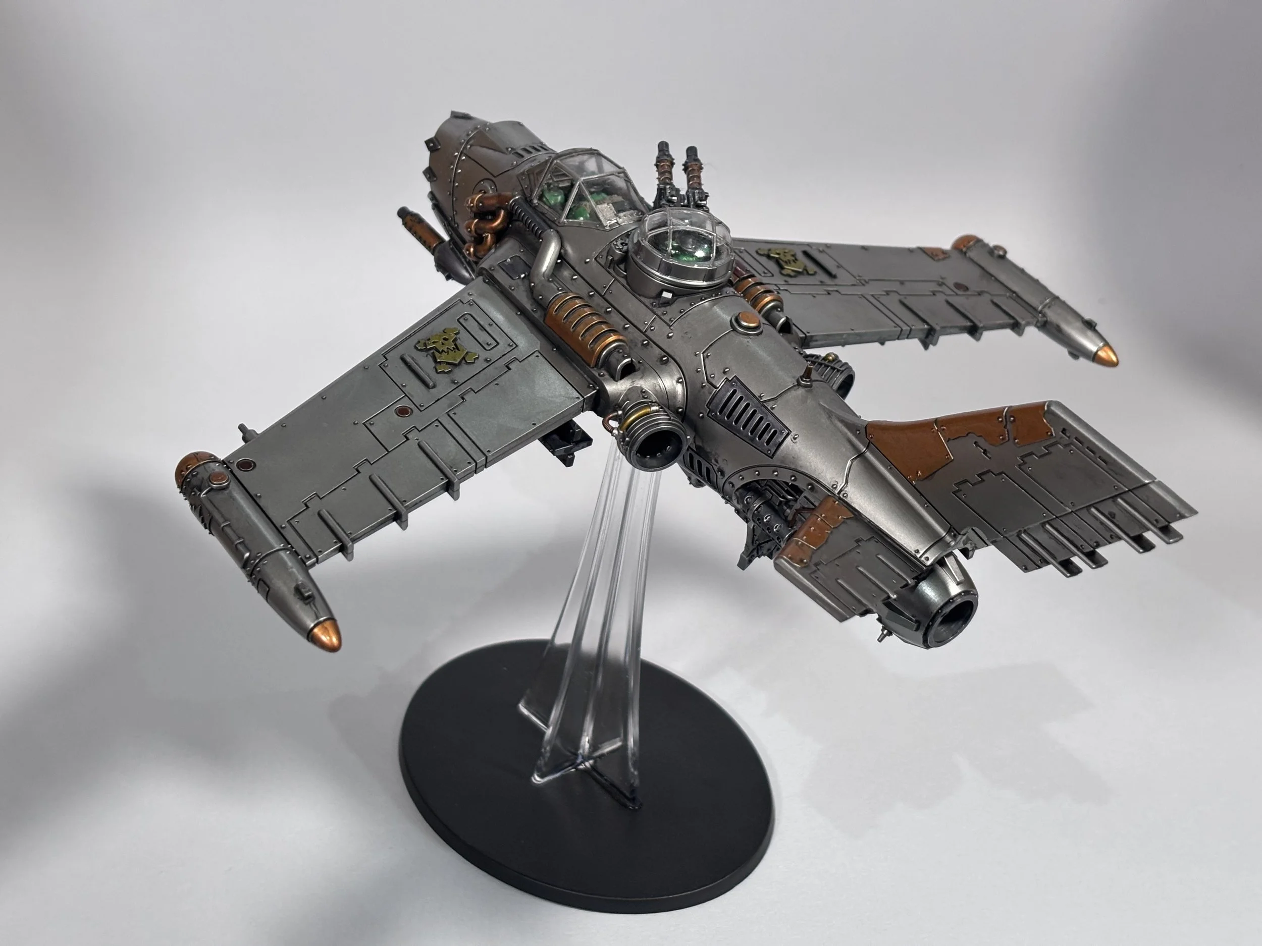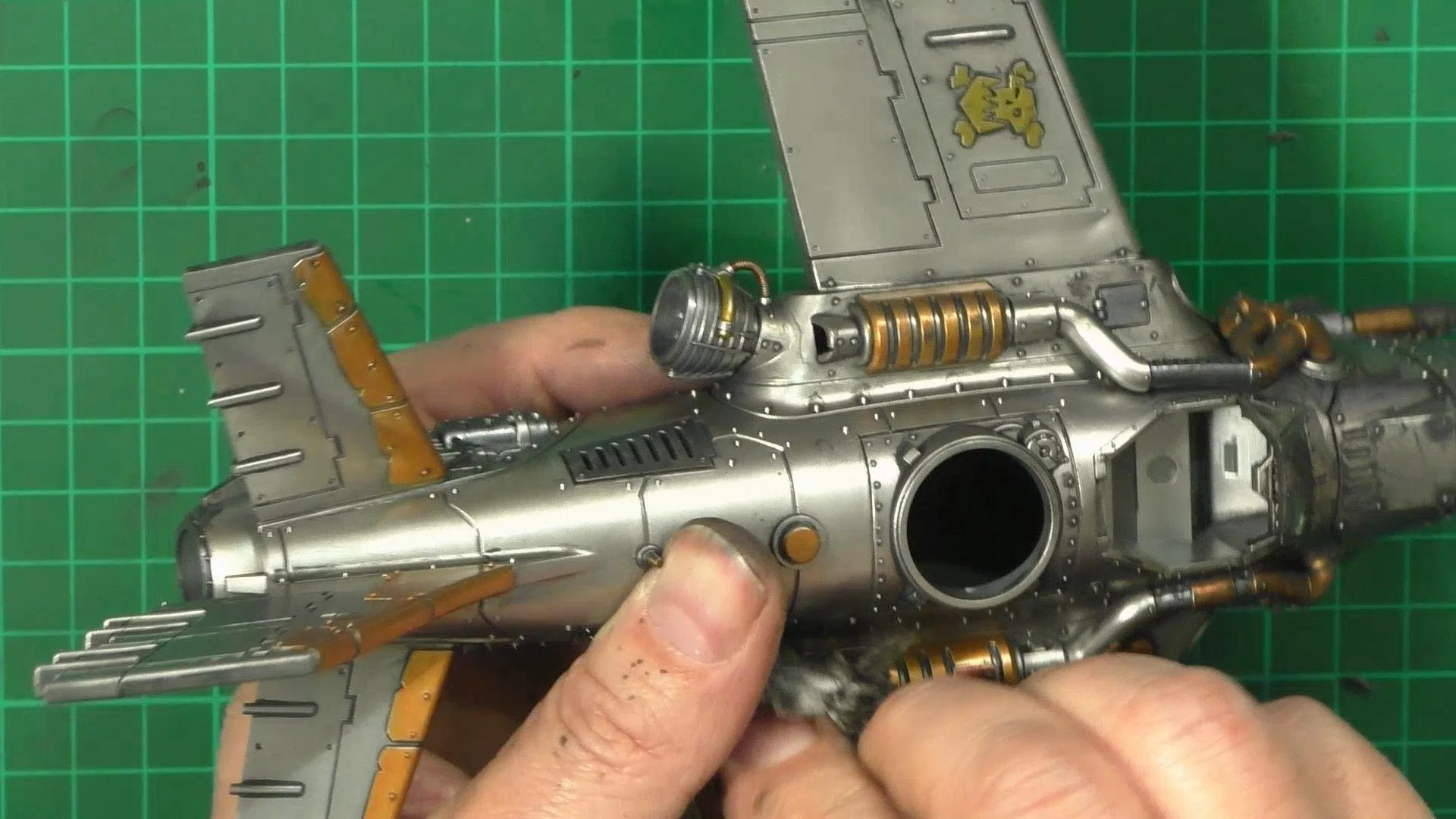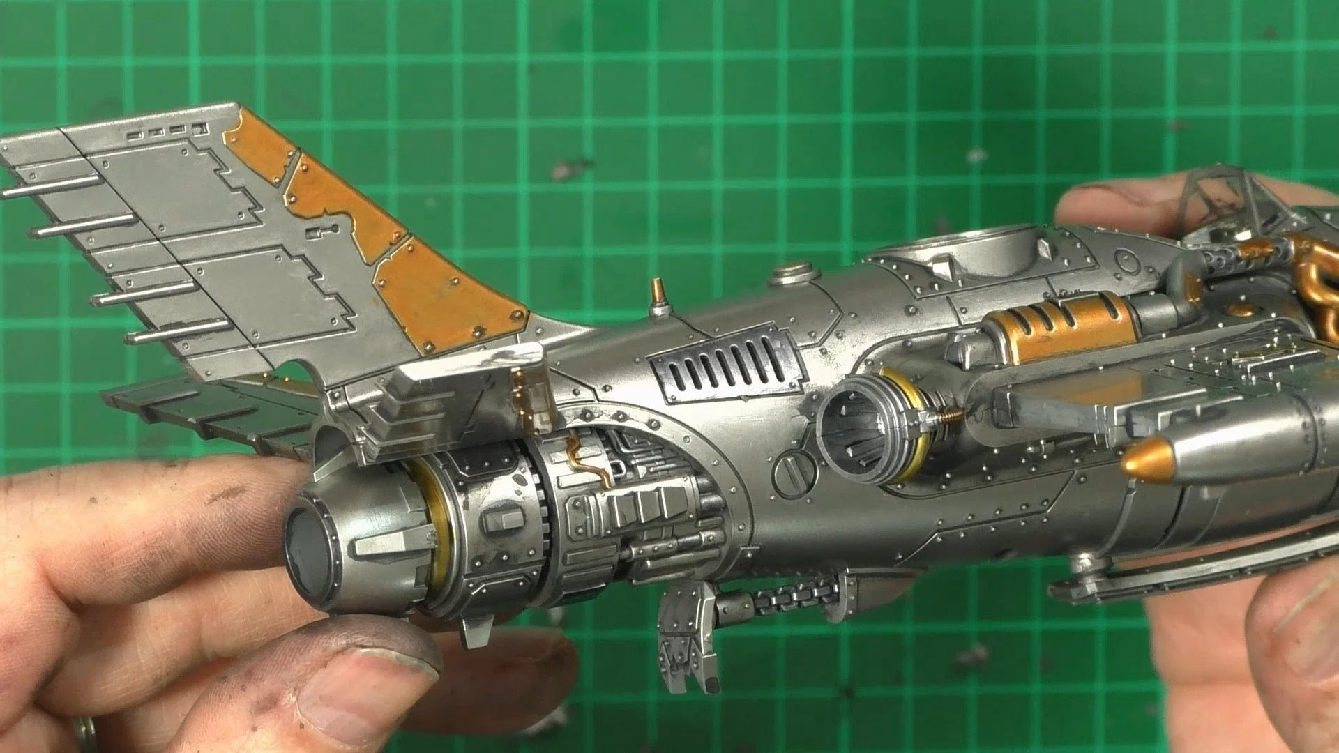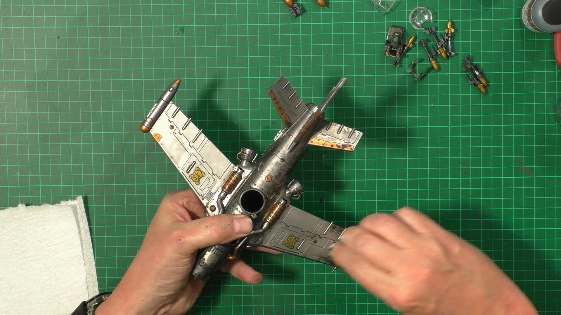 0.00 To start with, give our Ork crew a wash and drybrush 4:39 Next, we use Black wash FMW001 and cover the entire model and allow it to dry. 20:13 With the wash dry, we remove it with a damp paper towel. 25:47 Next up with make a wash and use it to detail with rivers and retail parts. 33:03 Last up, we mount the Jet onto its stand. 38:29 The final reveal and thoughts.