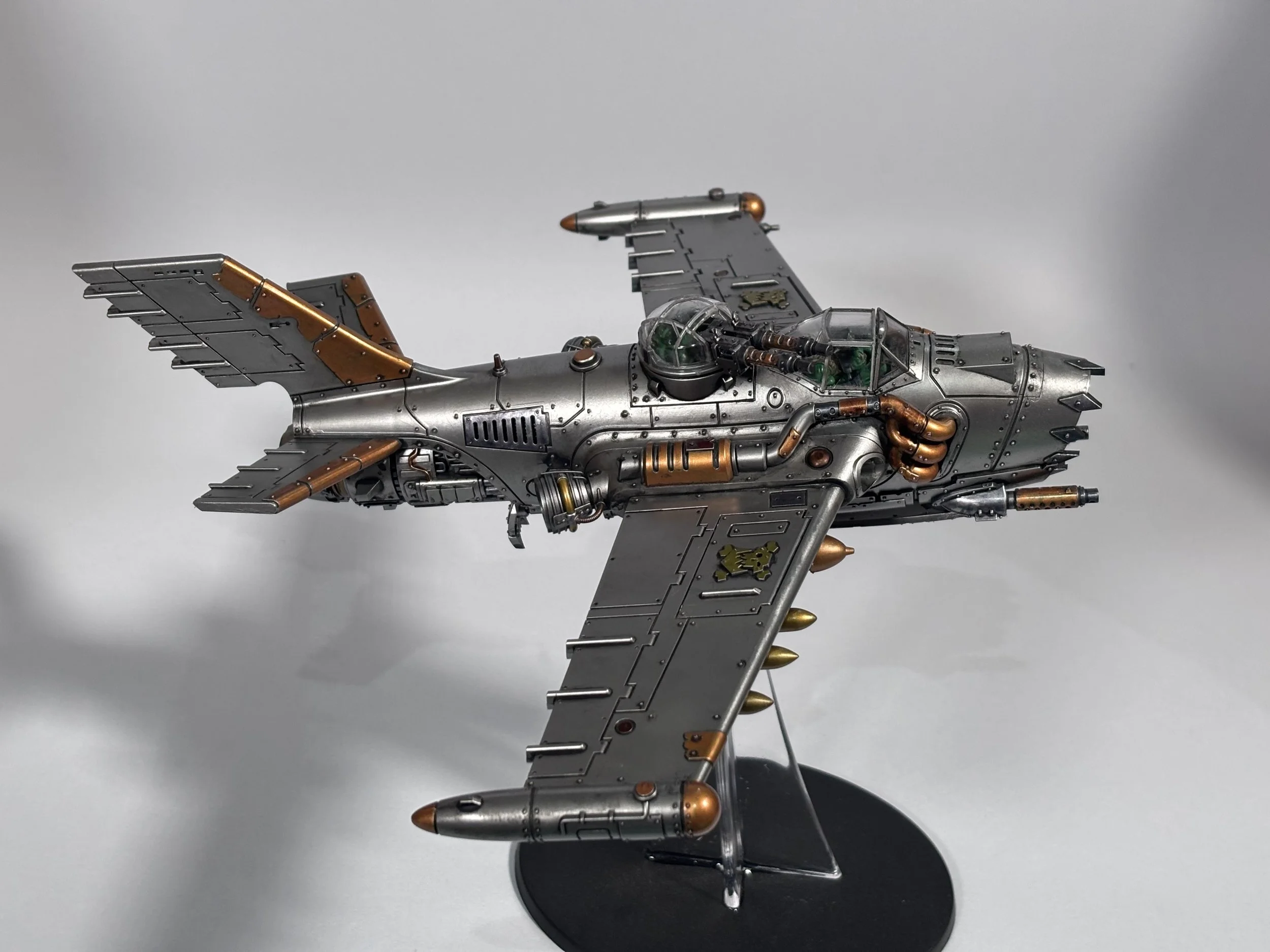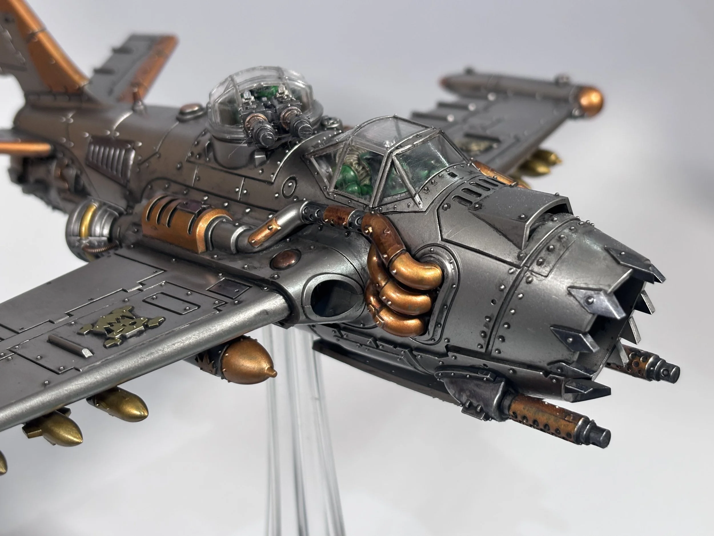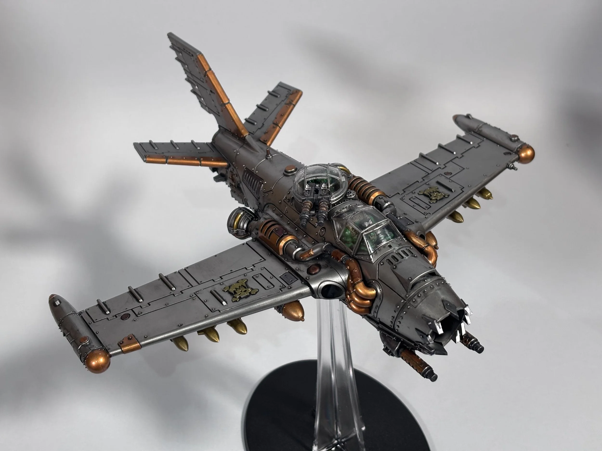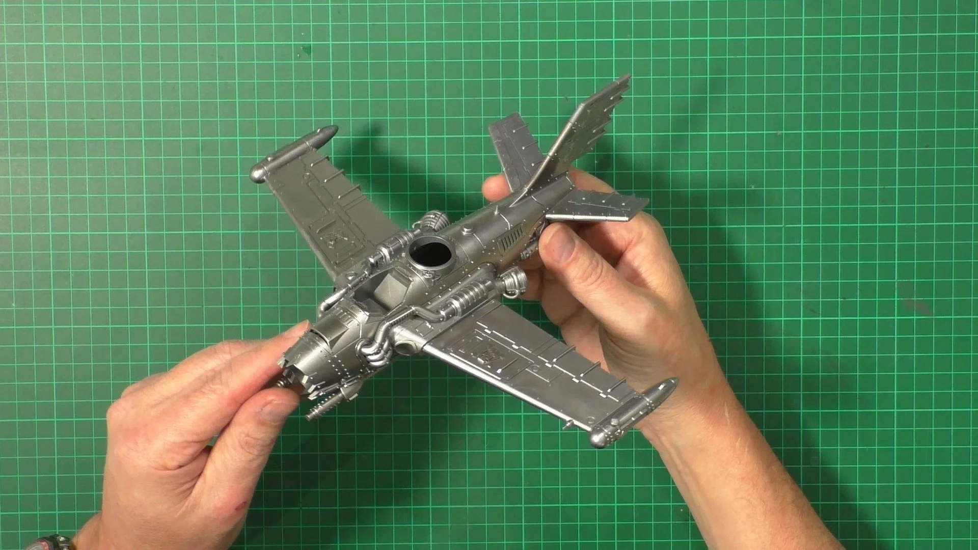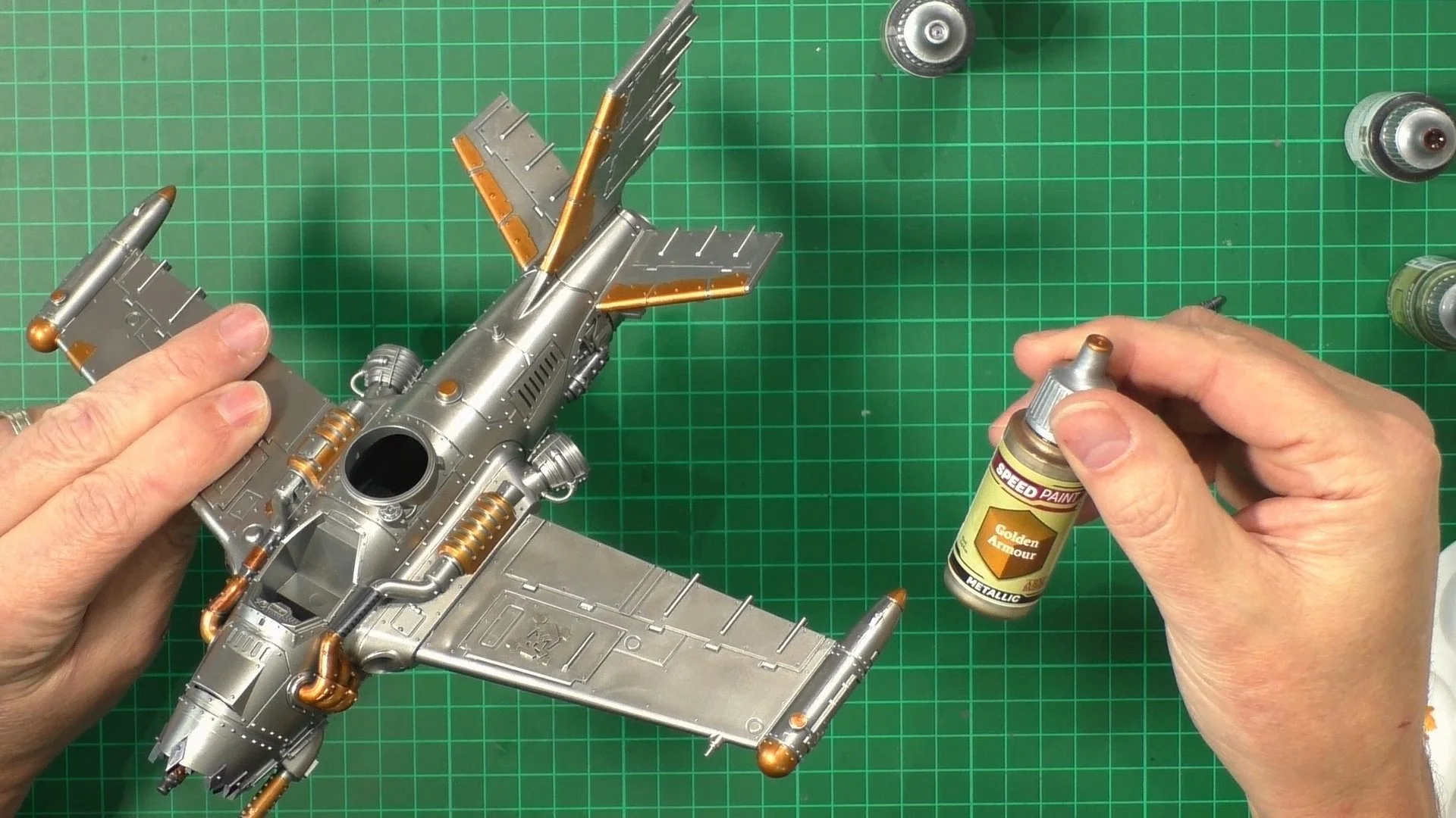 0.00 To start with, give our Ork crew a wash and drybrush 4:39 Next, we use Black wash FMW001 and cover the entire model and allow it to dry. 20:13 With the wash dry, we remove it with a damp paper towel. 25:47 Next up with make a wash and use it to detail with rivers and retail parts. 33:03 Last up, we mount the Jet onto its stand. 38:29 The final reveal and thoughts.