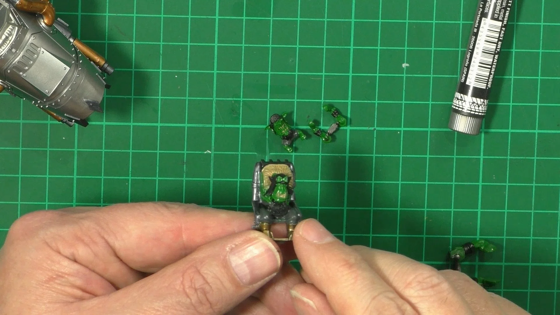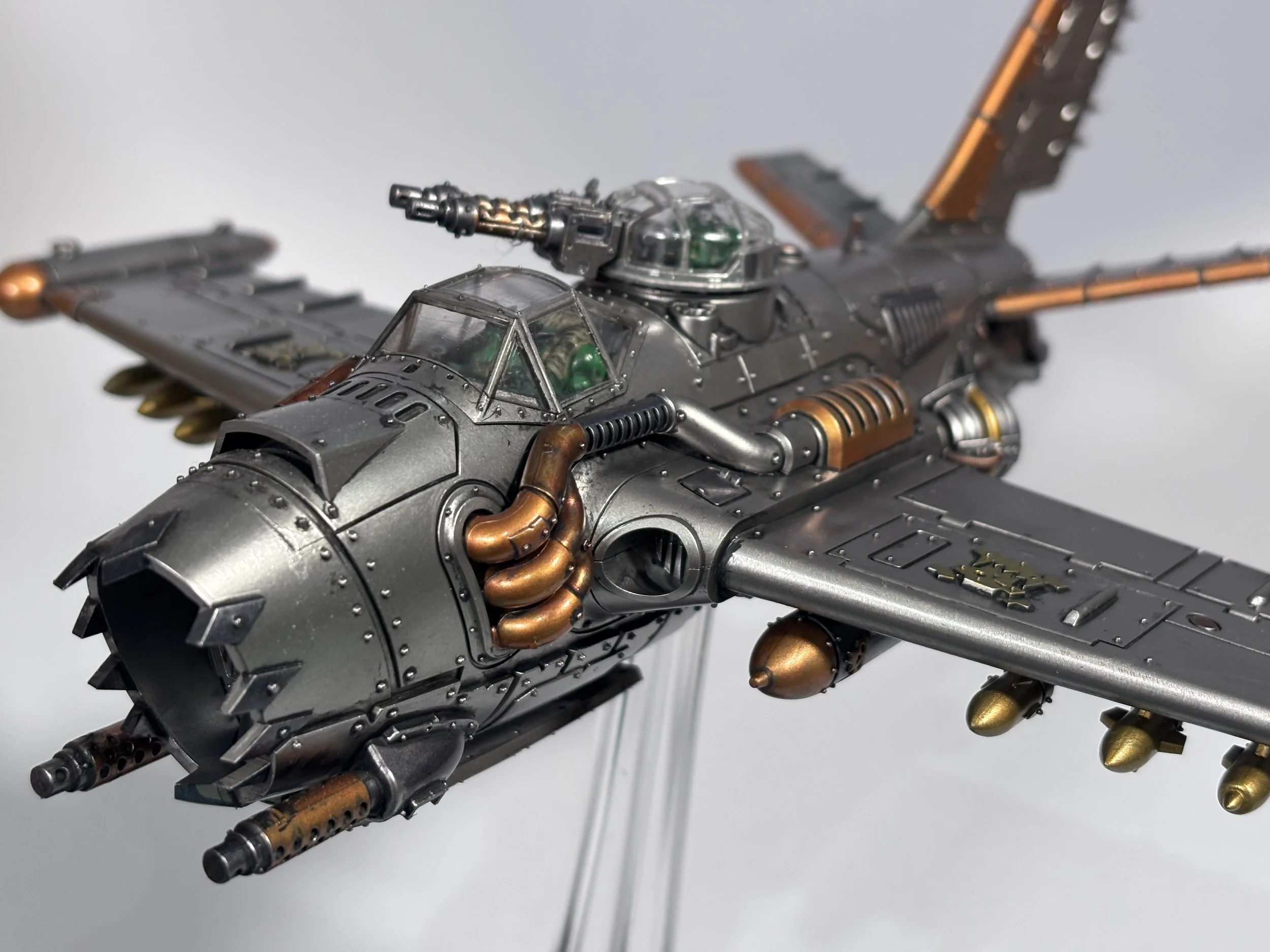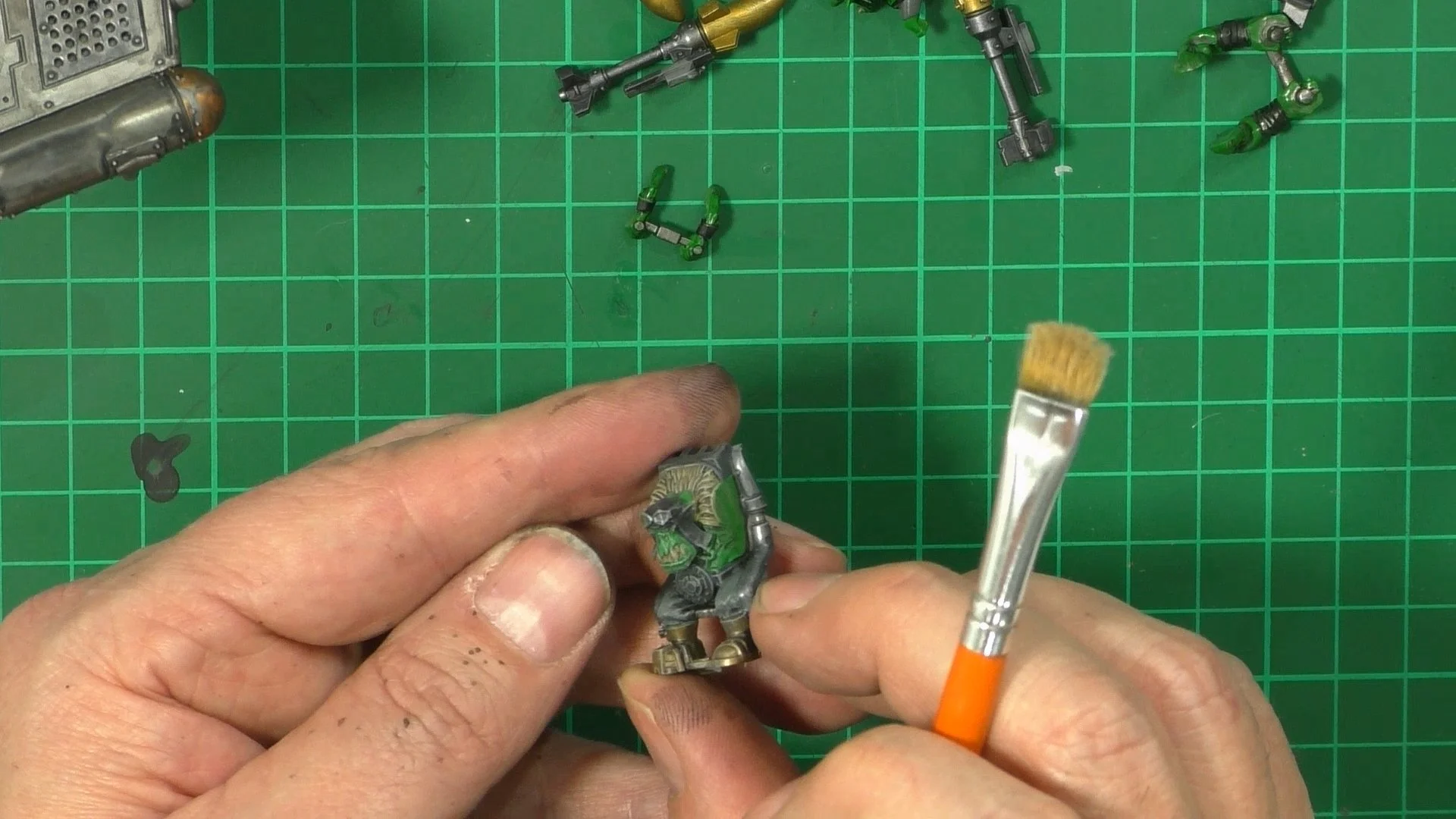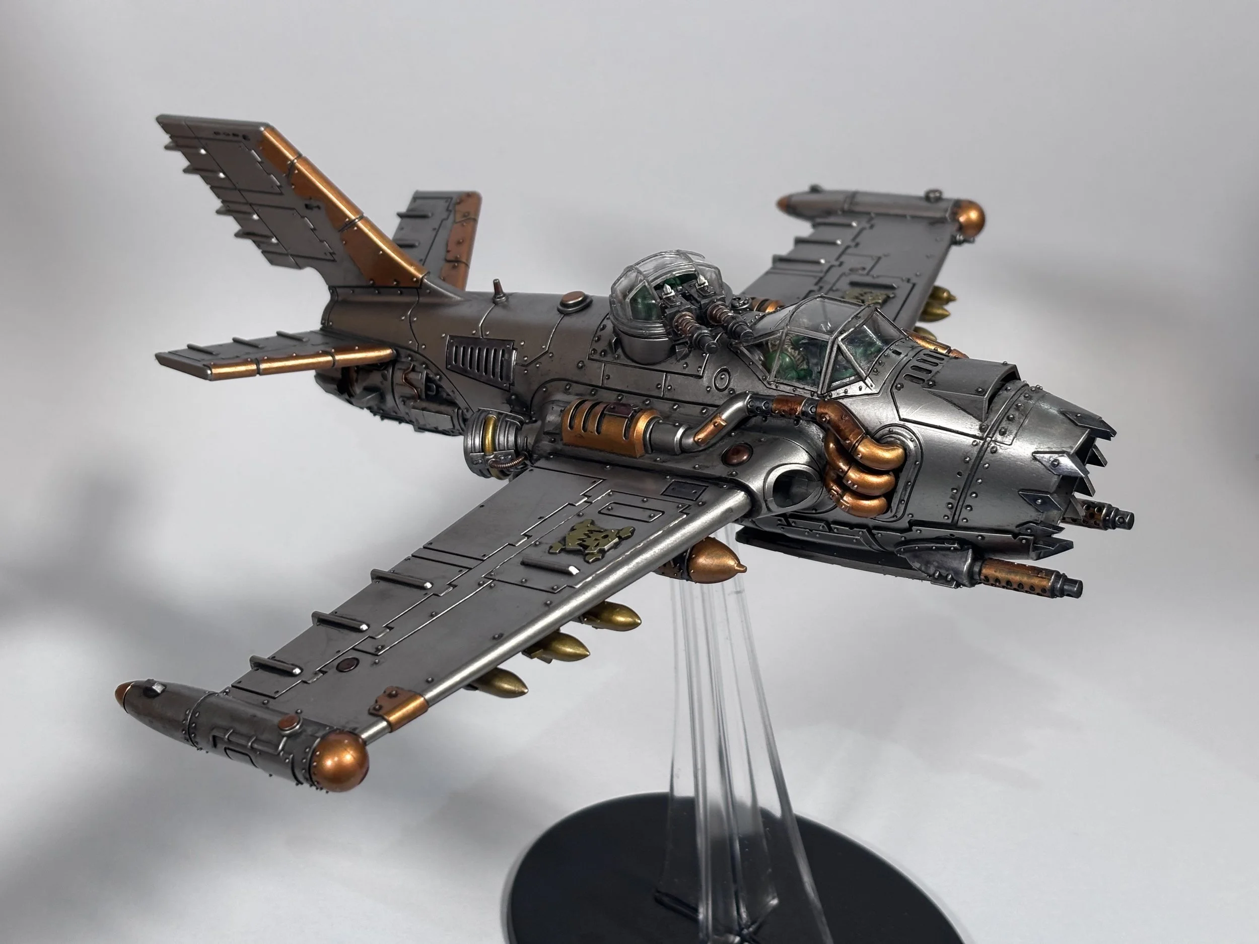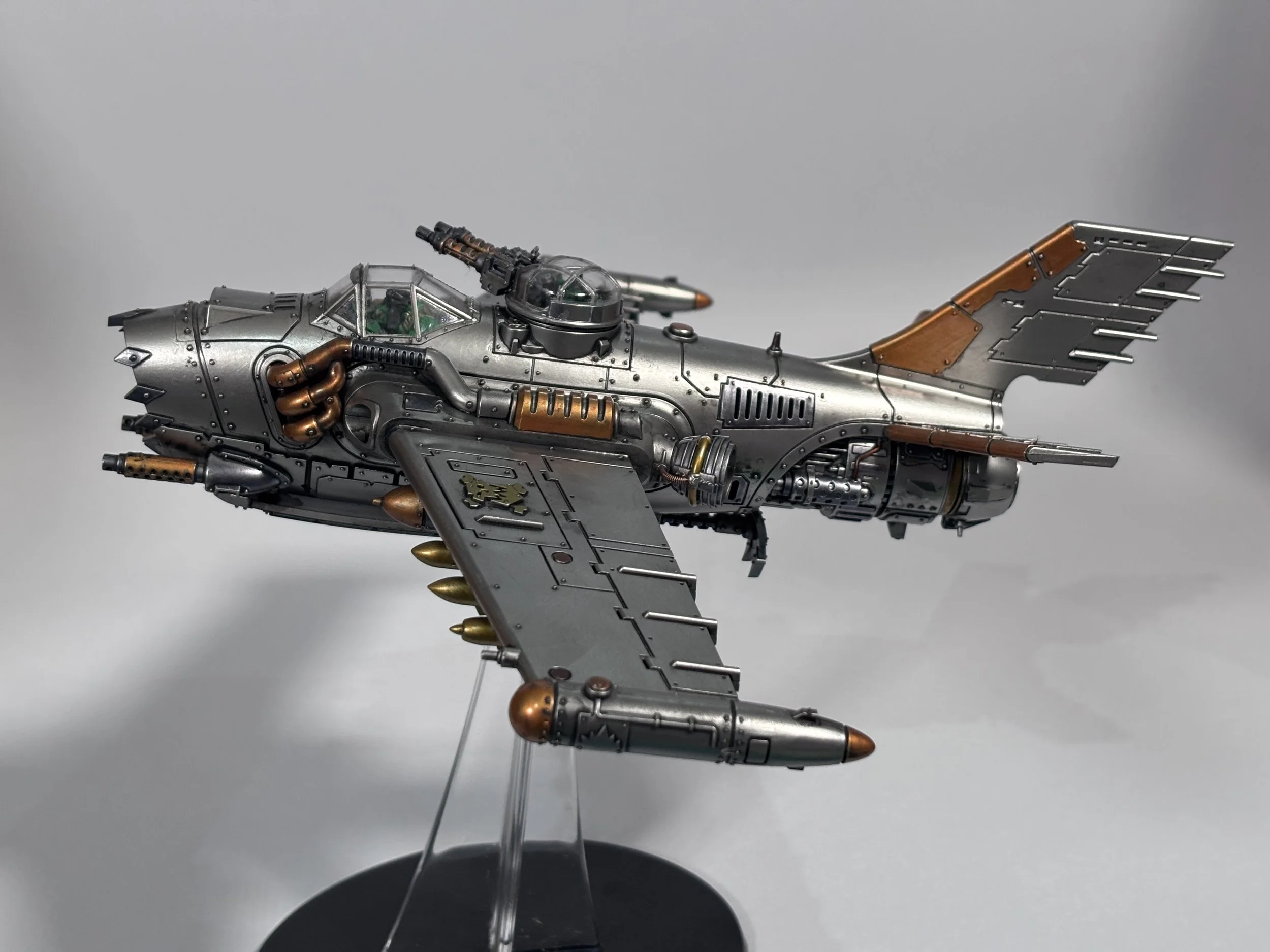 0.00 To start with, give our Ork crew a wash and drybrush 4:39 Next, we use Black wash FMW001 and cover the entire model and allow it to dry. 20:13 With the wash dry, we remove it with a damp paper towel. 25:47 Next up with make a wash and use it to detail with rivers and retail parts. 33:03 Last up, we mount the Jet onto its stand. 38:29 The final reveal and thoughts.